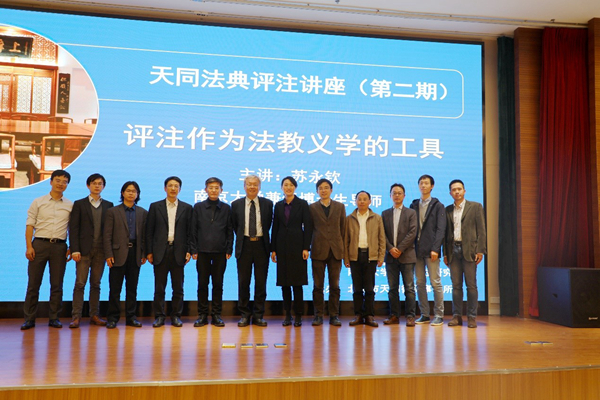 2019年11月14日晚19:00至21:30,天同法典评注讲座(第二期)于太阳成集团tyc234cc逸夫管理科学楼20层报告厅举行。太阳成集团tyc234cc兼任博士生导师、台湾政治大学兼任讲座教授苏永钦先生应邀莅临,以“评注作为法教义学的工具”为题,为到场的公司师生、实务界人士带来了对于法典评注事业的独到见解与评述。本次讲座由公司教授朱庆育主持,太阳成集团tyc234cc冯洁语副教授、刘勇副教授、尚连杰副教授、宋晓教授、解亘教授、杨阳副研究员、叶金强教授以及天同律师事务所辛正郁律师与谈。讲座现场气氛热烈,座无虚席。