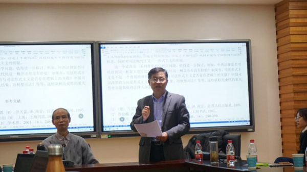 讲座伊始,周安平教授对周永坤教授的到来表示了热烈的欢迎,并向在场师生介绍了周永坤教授的学术成就,尤其是在豆瓣上获得很高评分的《法理学—全球视野》等著作。随后,周永坤教授开始为大家介绍本次讲座的主要内容。首先,周永坤教授介绍了“韦伯命题”在改革开放之后的中国学界引起的马拉松式的论辩并对其中具有代表性的论战经过进行了系统的回顾。紧接着周永坤教授对韦伯命题即中国司法是不是反形式的、实质主义司法类型的“卡迪司法”进行了详尽的解析。其一,对韦伯命题的由来及其理论依据进行了理论阐释,指出韦伯命题的立论点在于中国古代的特殊形态——“家产制”;其二,根据理想类型和经验事务的逻辑关系,指出反驳“韦伯命题”的正确途径,即推翻其将中国司法归入卡迪司法的基本依据——家产制社会及由此产生的对形式司法的抗拒及对实质司法的偏爱——也即用“整体”的眼光来观察中国司法,而不仅仅是列举某种形式主义的经验事实;其三,根据之前的分析,对“韦伯命题”否定论中代表性的观点进行了一一驳斥。讲座的最后,周永坤教授直抒胸臆,认为韦伯成功回答了“东方社会为什么没有发展出形式主义的法律?”这个难题,并对国内否定形式主义法治的思潮进行了反思,提出了一系列引起在座老师和同学深思的问题,例如法律现代化这一概念还有没有价值,法治与司法形式主义是否存在逻辑上的关联,中国司法改革的方向是形式主义的司法还是结果、功利型司法,等等。