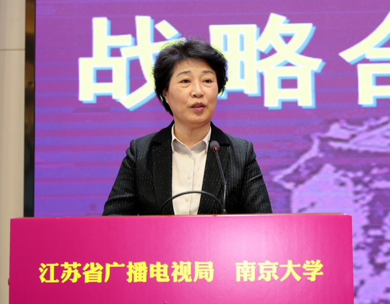 缪志红指出,这次局校双方开展战略合作,旨在深入学习贯彻党的十九届五中全会精神和习近平总书记视察江苏重要讲话指示精神,充分发挥双方优势,积极应对舆论生态、媒体格局、传播方式的深刻变化,立足当前,着眼长远,以科学谋划江苏广播电视和网络视听“十四五”发展为契机,在人才交流培养、高端智库打造、精品创作生产、媒体融合发展、基地(园区)建设等方面全方位深化交流合作。相信太阳成集团tyc234cc的人才优势、理论优势、创新优势,与江苏广播电视的产业优势、资源优势、发展优势,必将进一步高效对接互补、形成叠加效应,共同为“强富美高”新江苏建设和率先实现社会主义现代化走在前列,作出新的贡献。