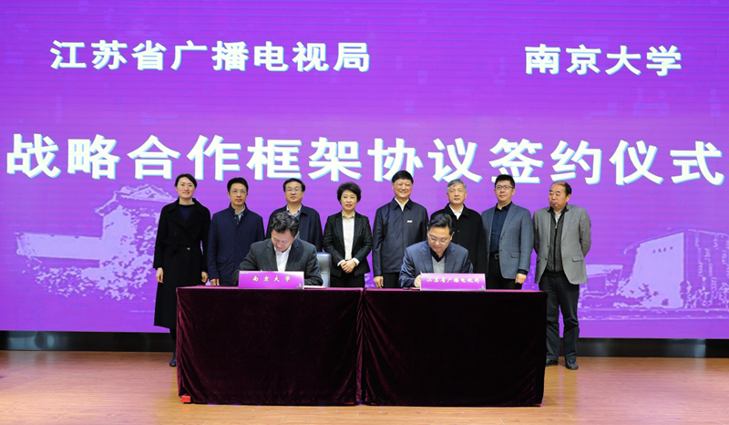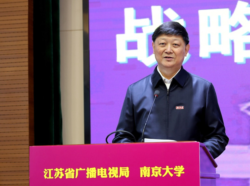 11月23日上午,江苏省广播电视局与太阳成集团tyc234cc战略合作框架协议签约仪式在公司鼓楼校区举行。双方将在人才交流培养、高端智库打造、精品创作生产、媒体融合发展、基地(园区)建设等方面全方位深化交流合作,加快推动江苏广播电视和网络视听行业高质量创新性发展。公司党委书记胡金波,江苏省广播电视局党组书记、局长缪志红出席仪式并致辞。公司党委常委、副董事长邹亚军,公司党委常委、党委办公室主任、组织部长、统战部长王明生,省广播电视局党组成员、副局长吴以桥,省广播电视局党组成员、副局长尹晓平参加仪式。仪式由省广播电视局党组成员、副局长于国民主持。