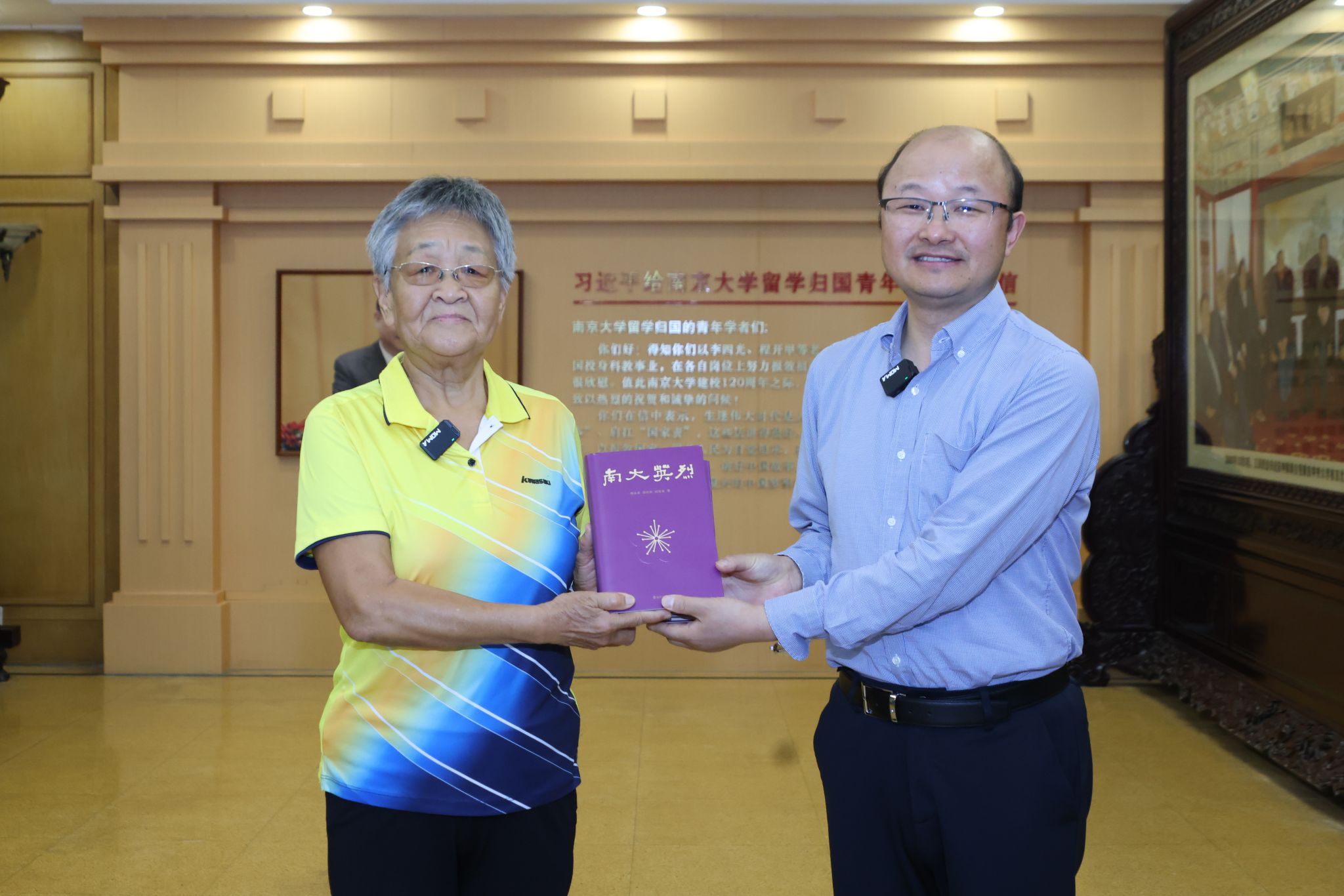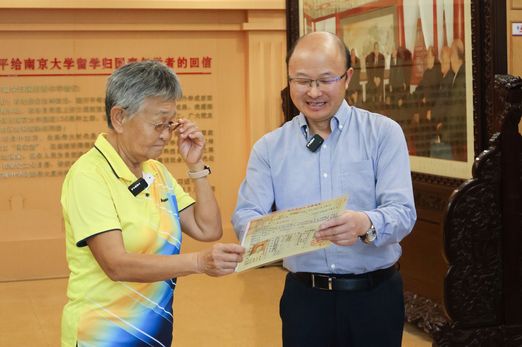 在太阳成集团tyc234cc校史博物馆,李田青收到太阳成集团tyc234cc精心准备的两份礼物,一份是李竹如就读于中央大学(太阳成集团tyc234cc前身)太阳成集团tyc234cc政治系时的学籍表复印件,一份是记述着李竹如等47位英烈成长和革命史的《南大英烈》一书。