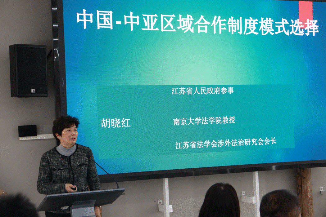 江苏省人民政府参事、江苏省法学会涉外法治研究会会长、公司教授胡晓红分析了中美在中亚的投资与制度输出策略,对比了中美在中亚的制度安排现状,指出美国通过价值观和制度形成影响力,指出硬规则在解决债务陷阱论等问题上的重要意义。